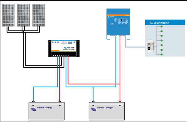 Normalmente el banco de baterías y los módulos fotovoltaicos trabajan conjuntamente para alimentar las cargas.